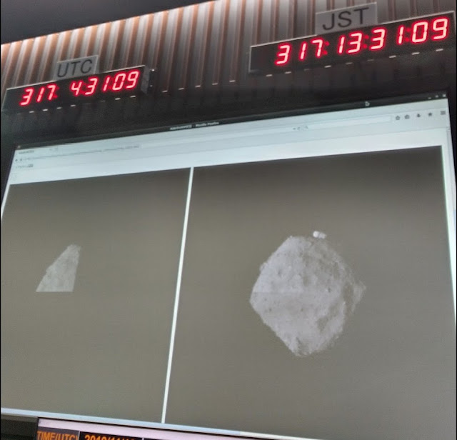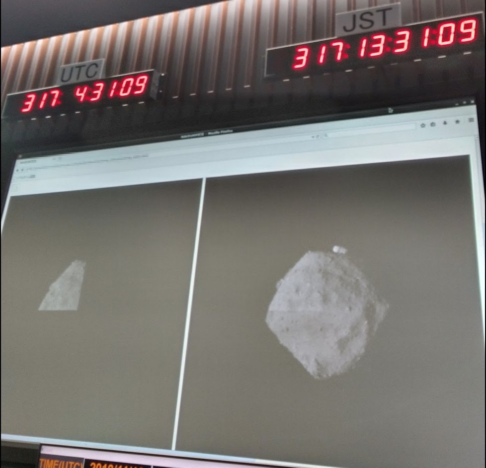 Below: The images taken by the Hayabusa-2 probe as it leaves the orbit of the asteroid are also displayed in the control room. This is a camera that continues to take scientifically valid photographs, but this time, the pictures were taken for the pleasure of all.
