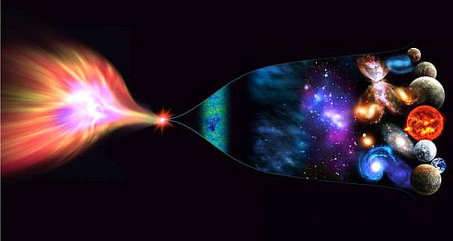 During the Big Bang, a "ball" of extremely hot matter composed of fundamental particles (protons, neutrons and electrons ) then developed and cooled to form the first atoms, stars and galaxies .