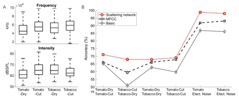 It is even possible to distinguish the sounds to know what is the source of the stress. Researchers conducted a deep-learning algorithm to distinguish between plant sounds and wind, rain, and other noise from the greenhouse, correctly identifying in most cases whether the stress was due to drought or at a break, depending on the intensity and frequency of the sound. Tobacco stressed by lack of water seems to produce louder sounds than cut tobacco, for example.