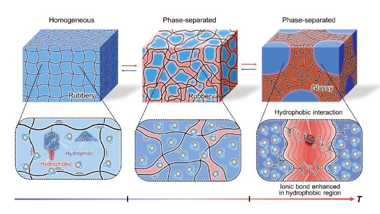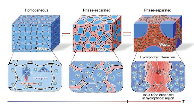 The poly [acrylic acid] polyelectrolyte gel (PAAc) was immersed in an aqueous calcium acetate solution. PAAc itself behaves like any other polymer-based material, softening when heated. But when calcium acetate is added, the molecules of materials interact in a similar way to thermophilic proteins, causing PAAc to behave very differently.As the temperature rises, the originally uniform gel separates into a dense polymer "phase" and a sparse polymer "phase." When it reaches a critical temperature of around 60 ° C, the dense phase undergoes severe dehydration, which strengthens ionic bonds and hydrophobic interactions between polymer molecules.