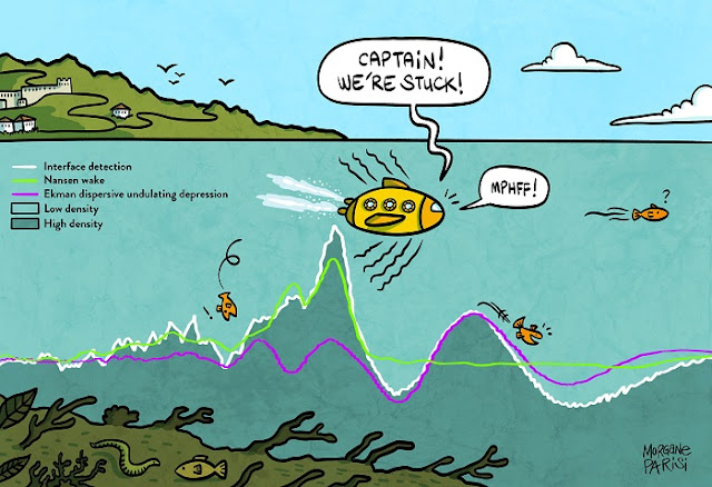 In 1893, the Norwegian explorer Fridtjof Nansen experienced a strange phenomenon when he was travelling north of Siberia: his ship was slowed by a mysterious force and he could barely manoeuvre, let alone pick up normal speed. In 1904, the Swedish physicist and oceanographer Vagn Walfrid Ekman showed in a laboratory that waves formed under the surface at the interface between the salt water and freshwater layers that form the upper portion of this area of the Arctic Ocean interact with the ship, generating drag.