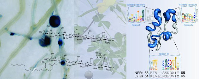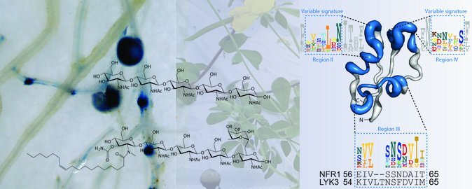 Legume plants fix atmospheric nitrogen with the help of symbiotic bacteria, called Rhizobia, which colonize their roots. Therefore, plants have to be able to precisely recognize their symbiont to avoid infection by pathogenic microbes. To this end, legumes use different LysM receptor proteins located on the outer cell surface of their roots. In the study published in Science, an international team of researchers led by Aarhus University show that pathogenic (chitin) or symbiotic signaling molecules (Nod factors) are recognized by small molecular motifs on the receptors that direct the signaling output towards either antimicrobial defense or symbiosis.