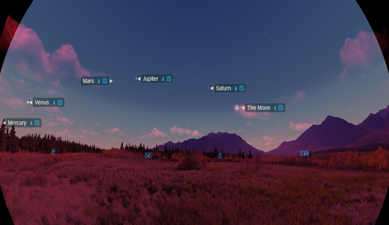The current early-evening sky is completely devoid of any of the five bright