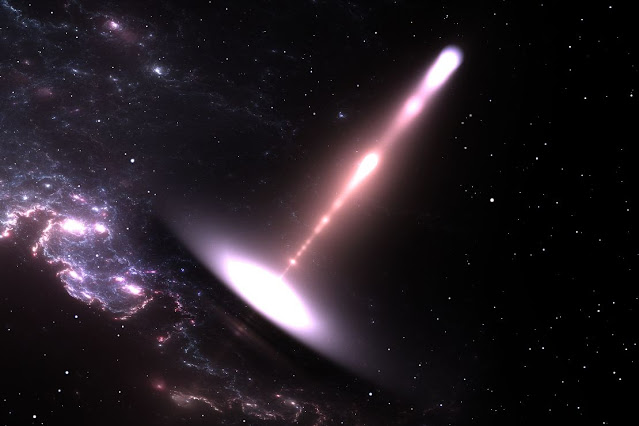 galaxy-sized jets. We've seen jets slam into dense clouds of gas, lighting