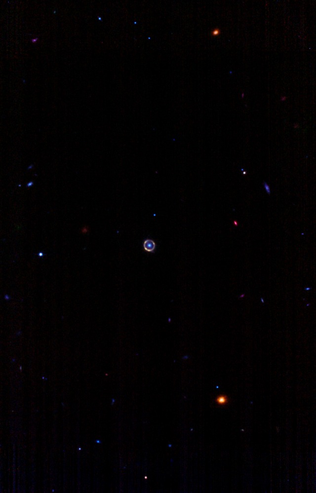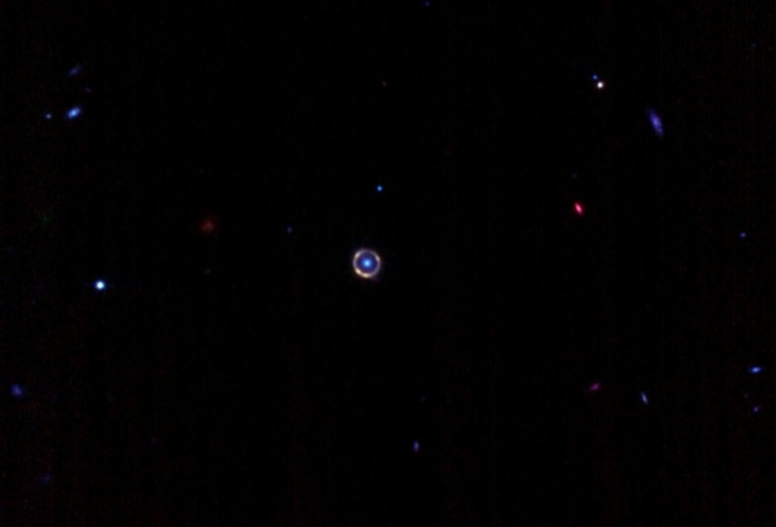 | Colorized image of a distant Einstein ring. (JWST/MAST; Spaceguy44/Reddit) |