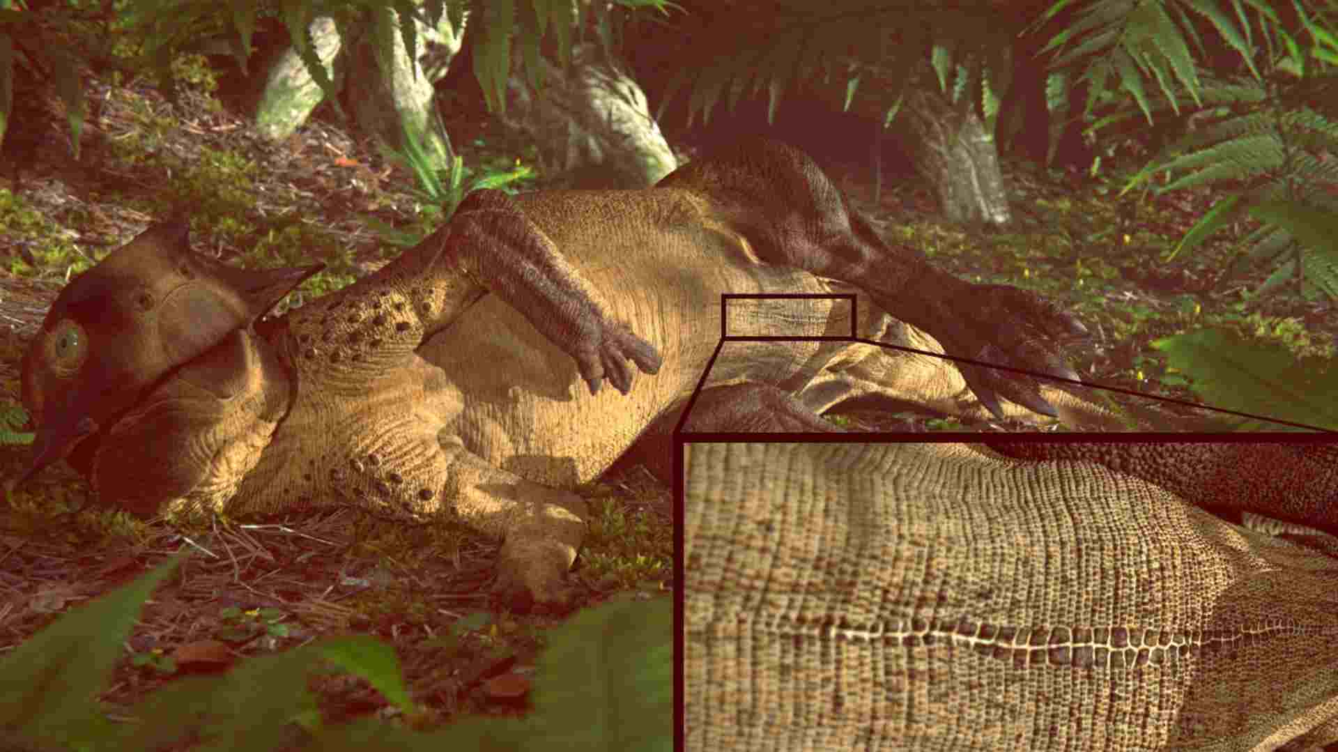 fossilized skin of Psittacosaurus , a 2-m-long, two-legged plant eater from